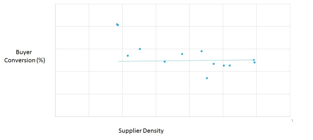 • Buyer preference to using a specific supplier – self-explanatory but if the buyer is sensitive to using the same supplier then there is a serious risk of disinter-mediation. This is further exacerbated if the buyer and supplier have the ability to exchange information outside the platform, the platform has high transaction cost and the friction in direct transaction is low.